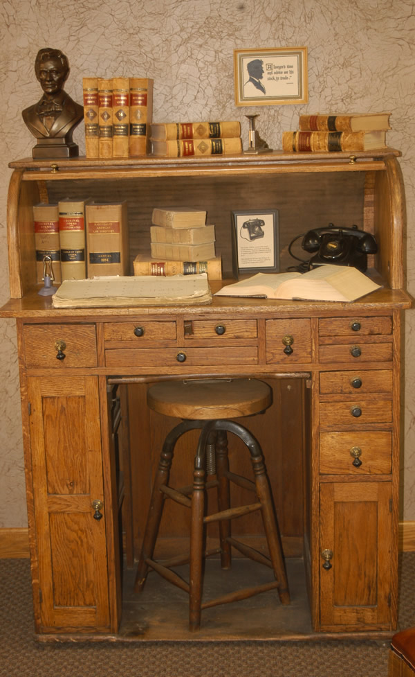 Early 1900s photo of Dan McCutchen in his “old office” at the Hampton Hotel. The Hampton was located on the lot currently occupied by Wells Fargo Bank. The chest of drawers behind Dan is still used today in our office building.